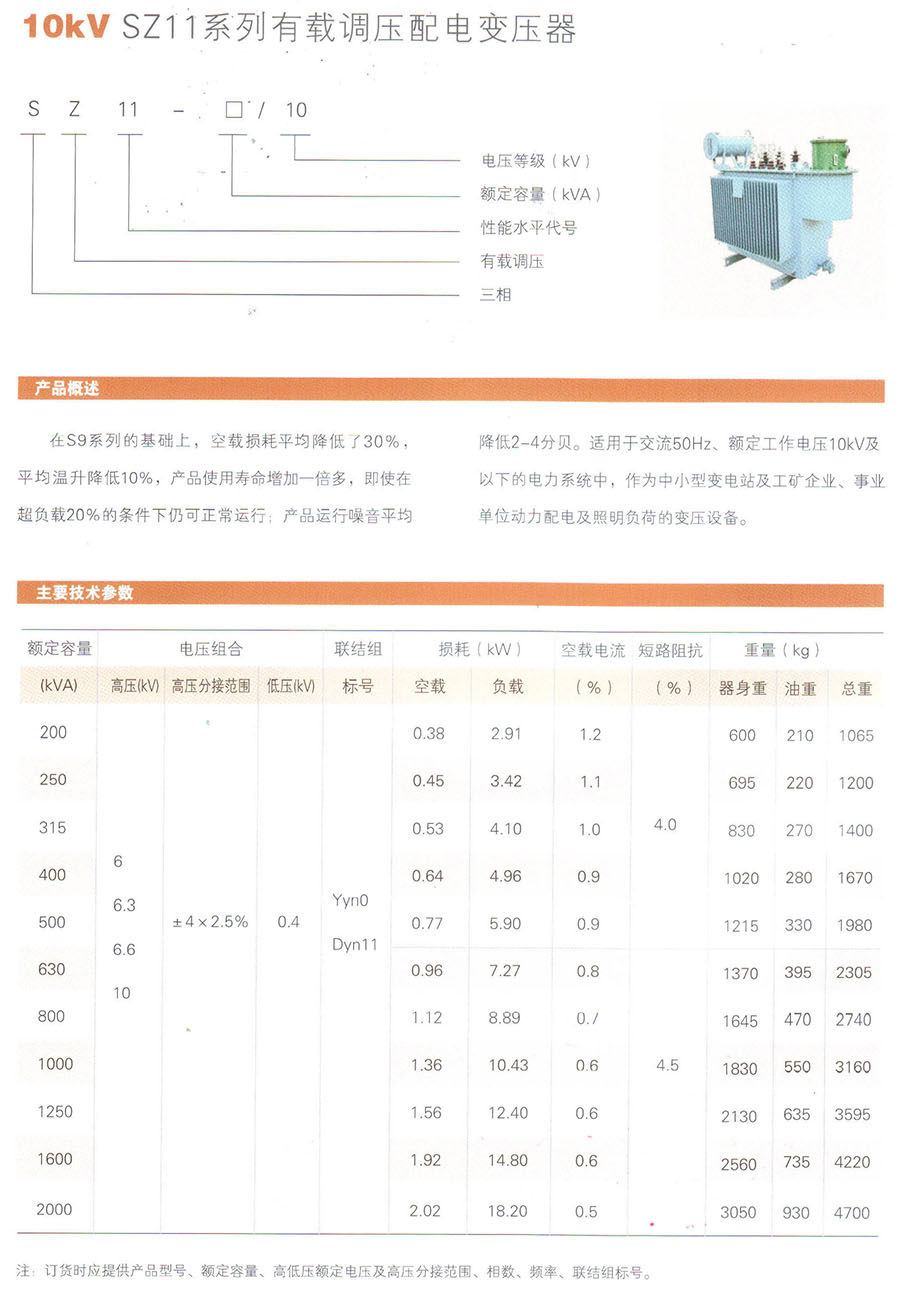 10kV SZ11系列有載調壓配電變壓器