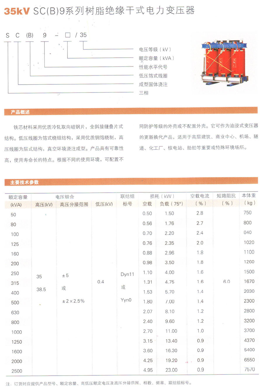 35kV SC(B)9系列樹脂絕緣干式電力變壓器