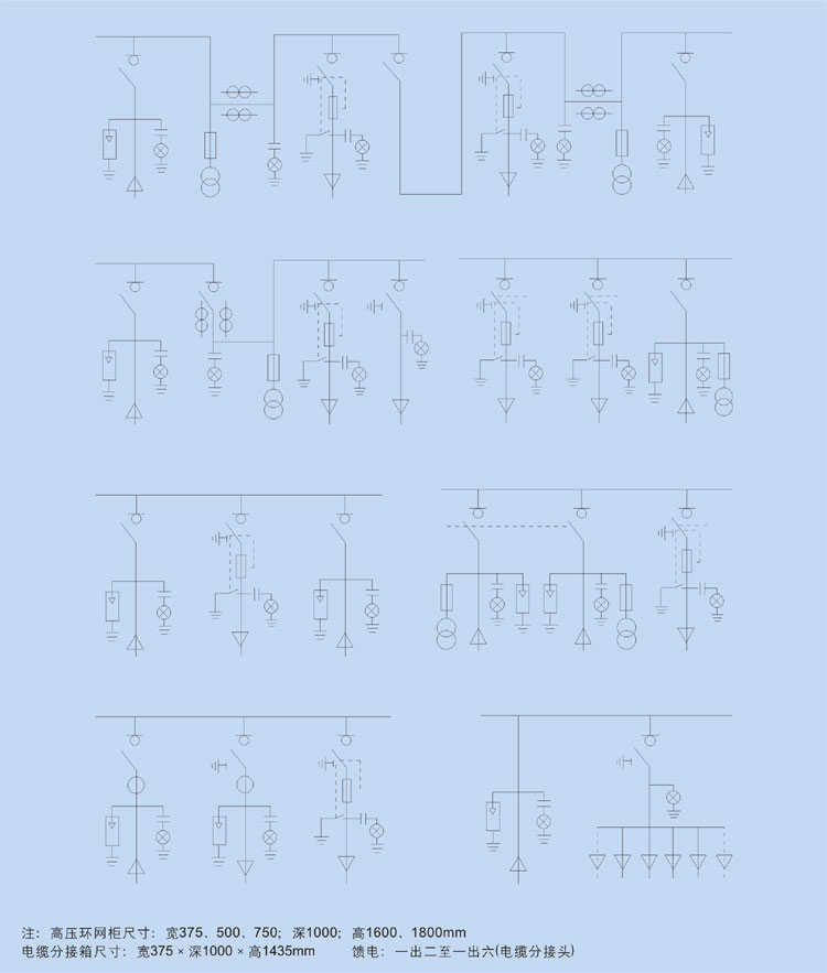 環(huán)網(wǎng)柜為金屬鎧裝封閉式,柜內(nèi)為空氣絕緣,具有終端變電站接線及適應(yīng)環(huán)網(wǎng)供電的接線。
